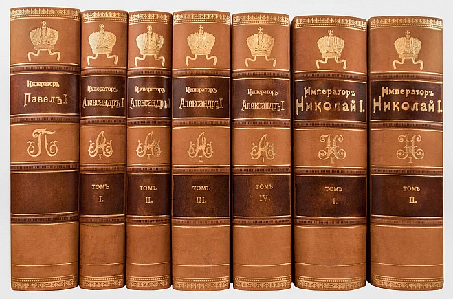1. Шильдер, Н. К. Император Павел I. 606 с., 34 л. ил, портр., факс. 28 х 20 см. В полукожаном переплете, имитирующем издательский.