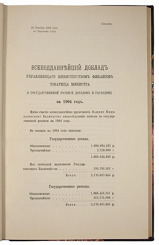Антикварная книга "Общая государственная роспись доходов и расходов на 1904 год" 1903г.
