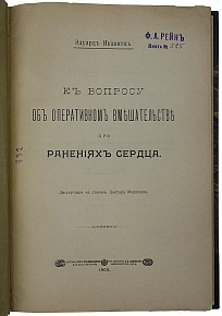 Антикварная книга "К вопросу об оперативном вмешательстве при ранениях сердца" Икавитц Э. 1903г. (с автографом автора)