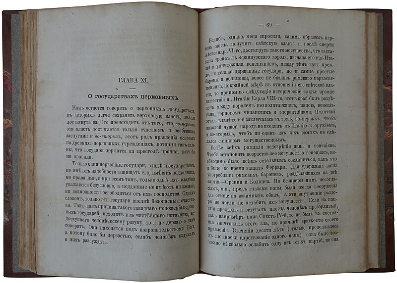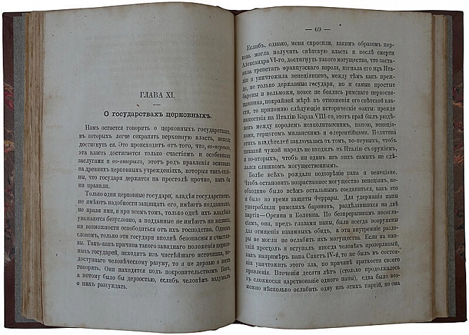 ОПИСАНИЕ Il principe. Перевел с немецкого Федор Затлер. Первое изданий знаменитого «Государя» на русском языке. Главный труд флорентийского государственного деятеля эпохи Возрождения Никколо Макиавелли (1469-1527). В русских переводах «Государь» также издавался под названиями «Князь» и «Монарх». Книга представляет собой универсальное руководство о науке управления любым государственным строем. Н. Макиавелли описывает и сопоставляет почерпнутые из древней истории примеры с собственными наблюдениями над своей эпохой и на этой основе выводит некие правила и законы политической жизни, дает практические советы правителям (государям, князьям, королям).