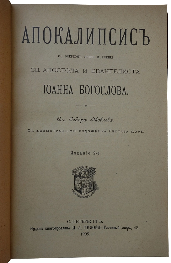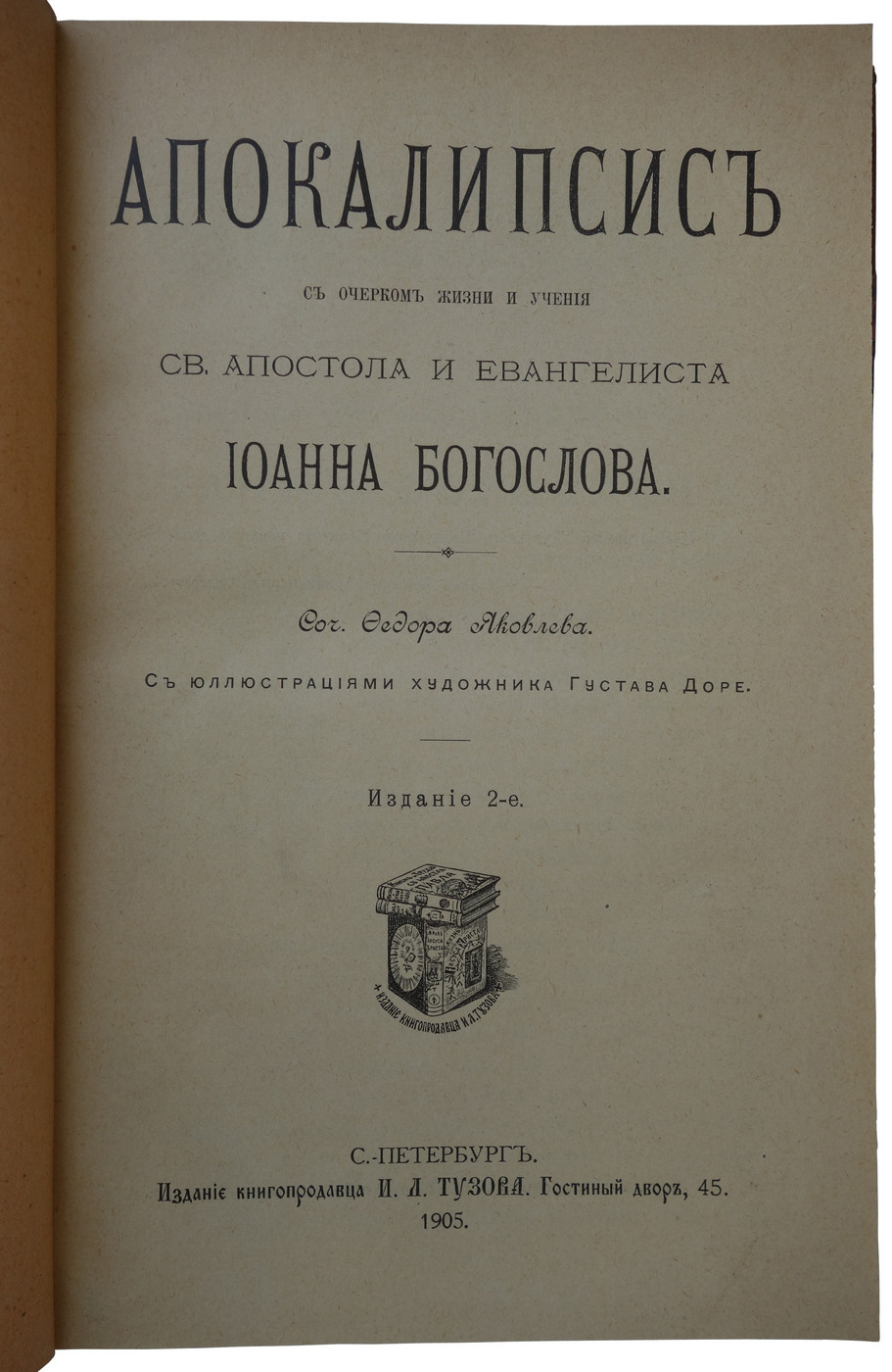 Антикварная книга "Апокалипсис: с очерком жизни и учения св. апостола и евангелиста Иоанна Богослова" Яковлев Ф.И 1905г.