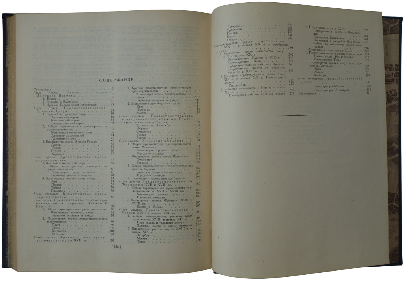«Градостроительство» — это серьезное исследование, охватывающее период с Древнего Мира, продолжая Средними веками и заканчивая градостроительством начала XX в. Завершающие книгу главы посвящены реконструкции Москвы и Ленинграда.
