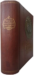 В роскошном цельнокожаном переплёте эпохи с золотым тиснением; на передней переплётной крышке металлический медальон с изображением двухглавого орла, на крыльях которого портреты Михаила Федоровича и Николая II Романовых, на задней переплётной крышке металлические вставки и блинтовое тиснение. Тройной золотой обрез, форзацы из бумаги «под муар».