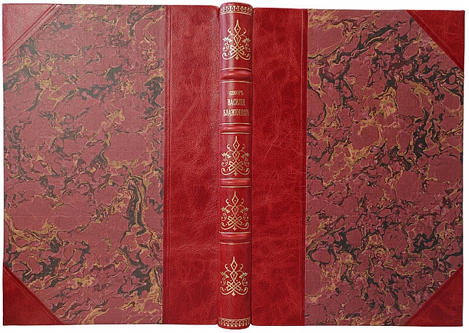 Богато иллюстрированное историческое описание храма Василия Блаженного, дополненное жизнеописаниями похороненных в соборе Василия и Иоанна Блаженных.