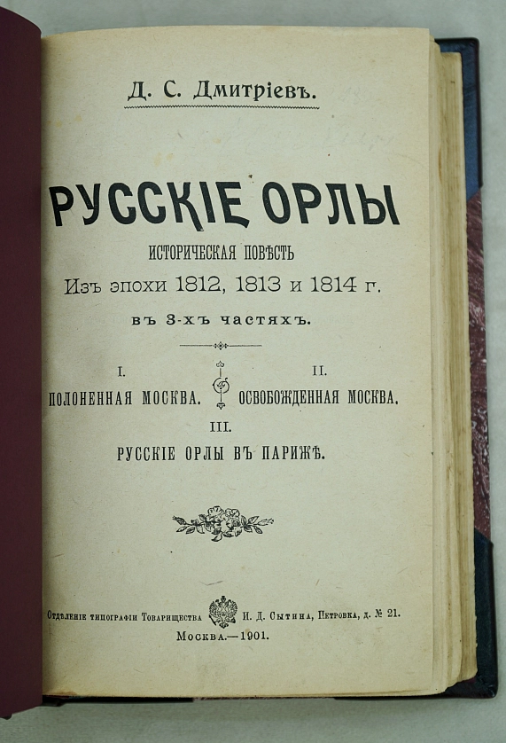 Антикварная книга "Русские орлы. Историческая повесть из эпохи 1812, 1813 и 1814г." Дмитриев Д.С. 1901 г.