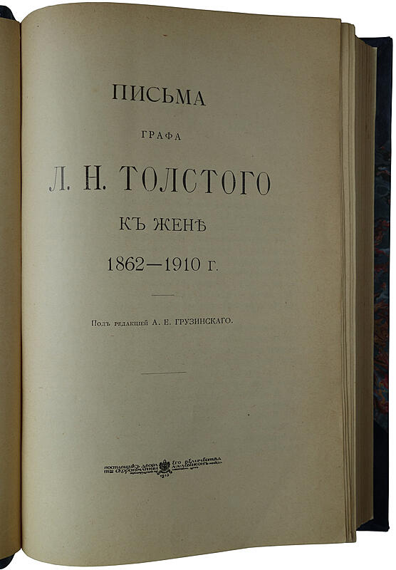 Антикварная книга "Письма графа Л. Н. Толстого к жене" 1862-1910 г. ОПИСАНИЕ Под редакцией А.Е. Грузинского. Опубликованы письма, адресованные Л.Толстым своей жене. Книга издана по инициативе Софьи Толстой.