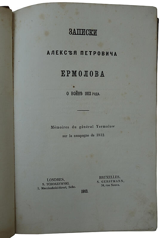 Антикварная книга "Записки Алексея Петровича Ермолова о войне 1812 года" Ермолов А.П. 1863г.
