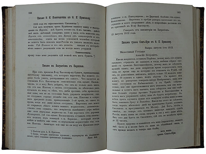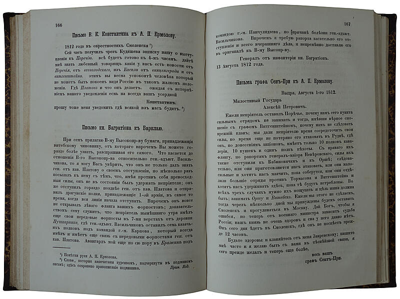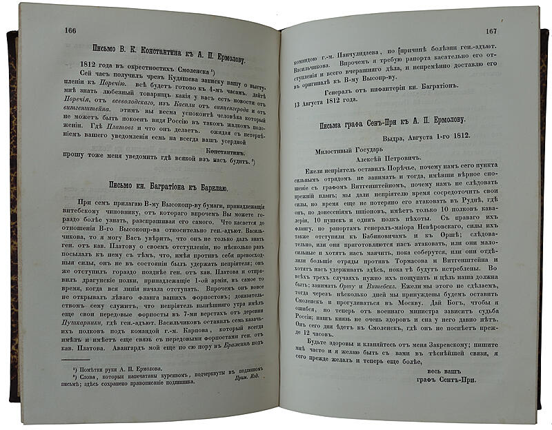 «Записки» Ермолова содержат ценные сведения о военных кампаниях 1805–1807 гг., об Отечественной войне 1812 г. В них даны живые описания наиболее крупных сражений, яркие характеристики М.И. Кутузова, П.И. Багратиона, М.Б. Барклая де Толли, М.И. Платова, П.X. Витгенштейна и др.