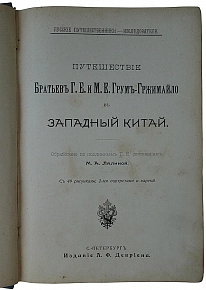 Антикварная книга "Путешествие братьев Г.Е. и М.Е. Грум-Гржимайло в Западный Китай" 1901г.
