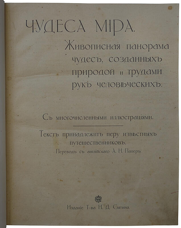 Дореволюционная иллюстрированная энциклопедия "Чудеса мира …" в переводе известного исследователя, путешественника и переводчика XIX века А. Н. Папера.