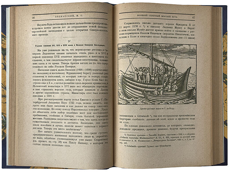 Антикварная книга "Великий Северный морской путь " Боднарский М.С. ОПИСАНИЕ Историко-географический очерк открытия Северо-восточного прохода. Приложение А.Э. Норденшельд: Вокруг Европы и Азии на пароходе "Вега" в 1878-1880гг. Издание об истории арктических экспедиций, которые пытались пройти из Европы до устьев великих сибирских рек за одну или две навигации, а позднее – соединить северные порты Атлантического и Тихого океанов навигацией через Северный ледовитый океан по Великому Северному морскому пути. Митрофан Степанович Боднарский (1870/1871 - 1953) - историк географии, физикогеограф и картограф. Специалист по истории географических открытий.