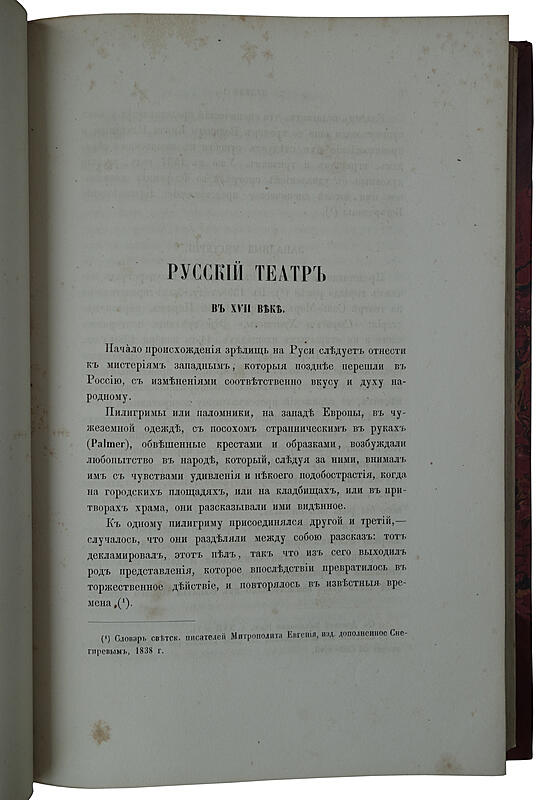 Антикварная книга "Летопись русского театра" Арапов П. ОПИСАНИЕ Пимен Николаевич Арапов (1791-1861) — драматург, историк театра. Всего на его счету более 20 переводных и оригинальных пьес. Его драматические произведения вкупе с поэтическими трудами создали ему репутацию «литературного шмеля». Наиболее удавались ему заметки об увеселениях и светская хроника, публикуемая в «Русском инвалиде» и «Московских ведомостях». «Летопись русского театра» — главный труд Арапова. Она представляет собой хронику русского театра с 1673 по 1825 гг, содержит сведения о репертуаре и составе трупп, позволяет судить о вкусах публики на основе успехов спектаклей, внутритеатральных отношениях и быте, содержит экспромты и эпиграммы.