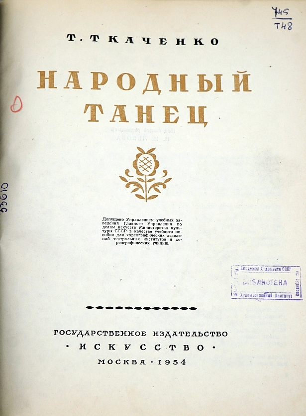 Антикварная книга "Народный танец" Ткаченко Т.С. 1954 г.
