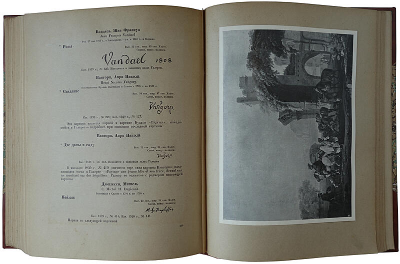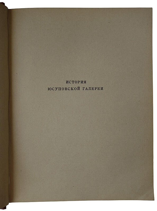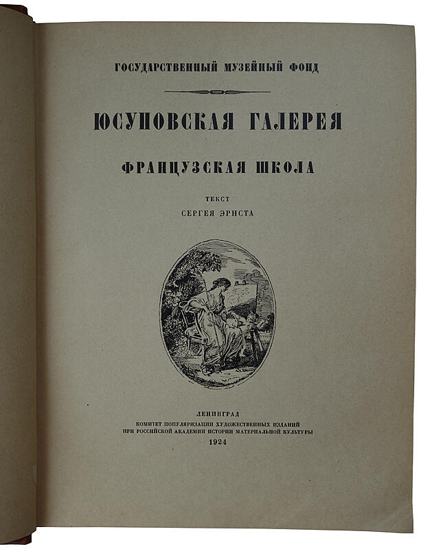 Иллюстрированный каталог живописных произведений французских мастеров из коллекции князя Николая Борисовича Юсупова. Тираж 500 экз. Текст издания состоит из двух основных частей: статьи С. Эрнста «История Юсуповской галереи» и его же статьи «Картины французской школы», которая содержит описания картин и их репродукции. Издание содержит, кроме того, письма французских художников к кн. Юсупову, алфавитные указатели художников и портретов, указатель воспроизведений, список «дополнений ... поступивших во время печатания книги».