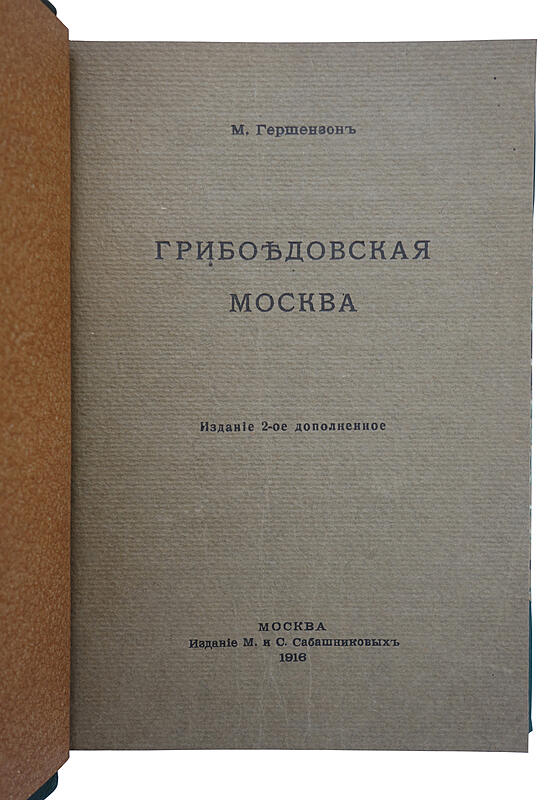 В книге «ГРИБОЕДОВСКАЯ МОСКВА» известный историк русской литературы Михаил Осипович Гершензон на основе писем и дневников московских жителей даёт непревзойдённое по детальности и живости описание московского быта XIX века. «Грибоедовская Москва» Гершензона – это Москва Грибоедова и Пушкина, это дух и атмосфера, нравы и интересы «московского общества», повседневная жизнь московских гостиных. «Предлагаемая книжка есть опыт исторической иллюстрации к „Горю от ума“, попытка представить возможно наглядным образом уголок той подлинной, реальной действительности, которую Грибоедов, творчески преображая, изобразил в гениальной комедии».