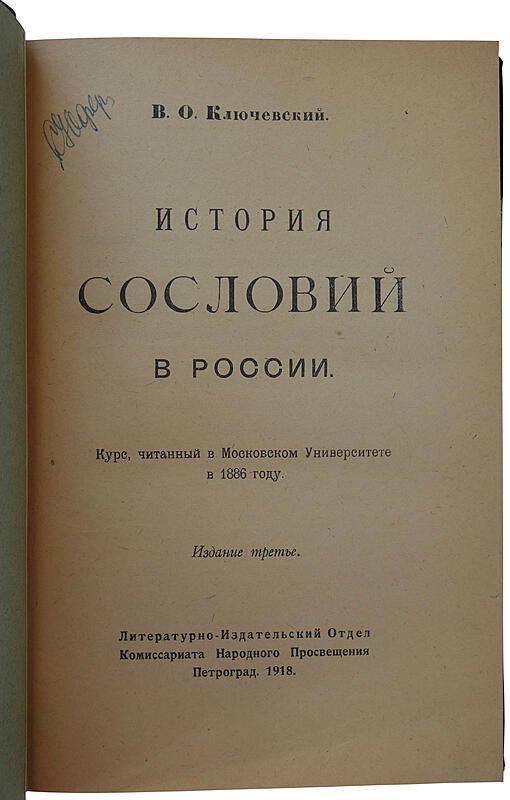 Антикварная книга "История сословий в России" Ключевский В.О. 1918г.