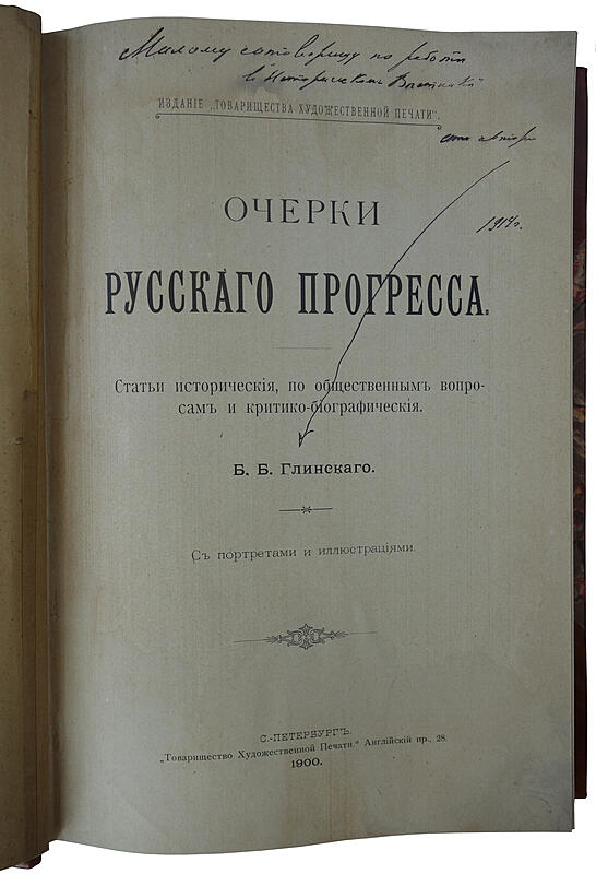 Антикварная книга "Очерки русского прогресса" Глинский Б.Б. (С автографом автора) 1900г.