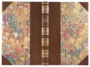 • Обложка и корешок украшены художественным многоцветным тиснением и сложной инкрустацией с использованием шагреневой кожи;