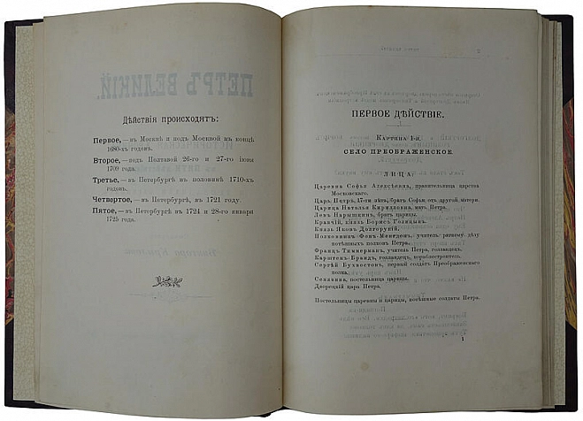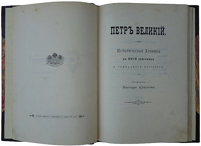 Антикварная книга "Петр Великий. Историческая хроника в пяти действиях и тринадцати картинах" Крылов В. 1901г.