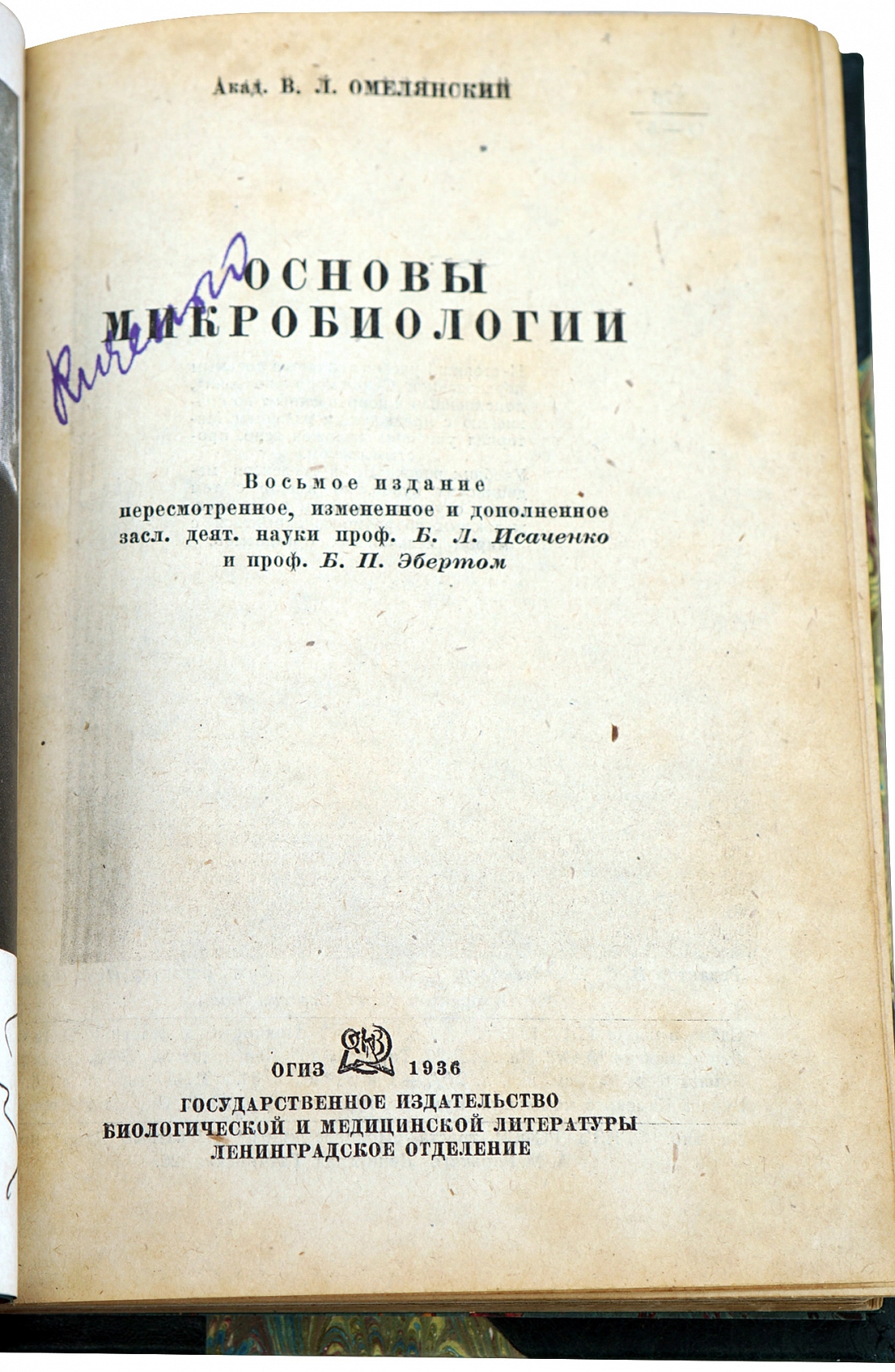 Антикварная книга "Основы микробиологии" академик В.Л. Омелянский 1936 г.