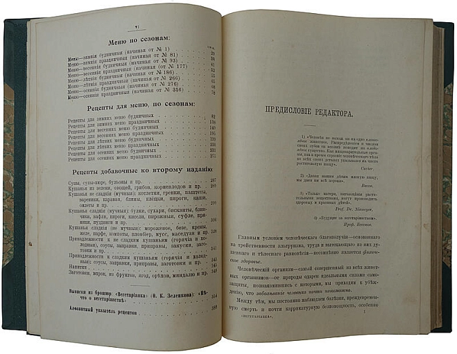 1500 рецептов по временам года, с рассчетом на 6 персон, под редакцией д-ра мед. А.П. Зеленкова.