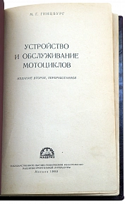 Антикварная книга "Устройство и обслуживание мотоциклов" Гинцбург М. Г. 1963 г.