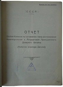 Антикварная книга "Отчет Особой Комиссии по составлению плана восстановления Каменноугольной и Антрацитовой Промышленности Донецкого бассейна" 1923г.