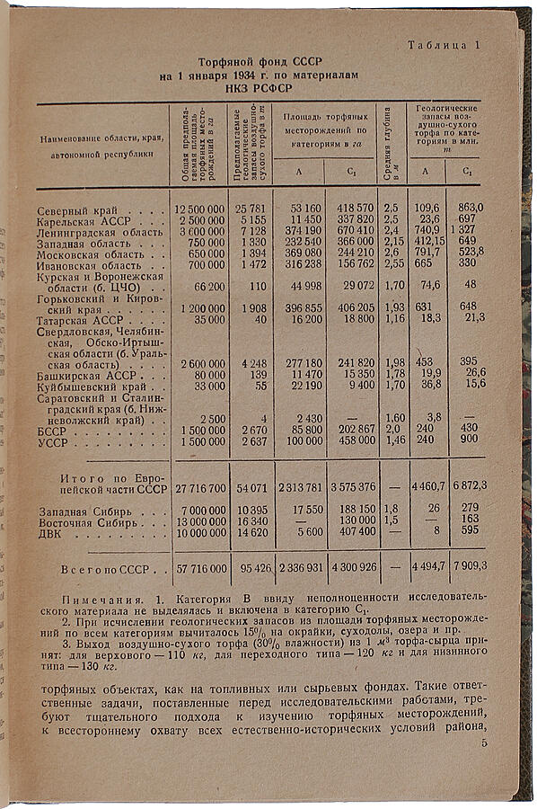 Антикварная книга "Исследование торфяных месторождений" Мартинсон А.Г., Введенский В.П. 1936г. ОПИСАНИЕ Торфяная промышленность — отрасль топливной промышленности, предприятия которой осваивают торфяные месторождения, добывают и перерабатывают торф. На нынешний момент основная часть торфа, который добывается в России, используется для потребностей сельского хозяйства (в качестве удобрения), как сырьё для некоторых химических предприятий и как топливо на некоторых электростанцияхВ России до выхода Высочайшего повеления в 40-х годах XIX века по экономическим причинам торф как топливо не использовался. По сравнению с дровами торфяное топливо было дороже, и разработка торфа без государственной поддержки была нерентабельной. В Европе массовое использование торфа как топлива началось уже в XVII веке. А в России только в 1773 году Михаилом Федоровичем Соймоновым, одним из организаторов торфяного дела в России, была составлена первая специальная инструкция для разработки торфа. После выхода Высочайшего повеления о принятии мер к сохранению лесов Московской губернии положение с использованием торфа как топлива резко меняется. Торф как топливо выходит на первые позиции. Министерство Государственных Имуществ энергично приступает к эксплуатации казённых торфяников. В 1851 году по Высочайшему повелению, в Москве учреждается Комитет для развития торфодобывающей промышленности. Для комитета была поставлена задача: «Всемерно заботиться о развитии торфяной промышленности, наблюдать за правильной разработкой торфяников, вводить торфяное топливо в городских и казенных зданиях и наблюдать за продажей выработанного торфа». По данным за период с 1859-й по 1861 год под Москвой разрабатывалось до 40 торфяников. 21 декабря 1882 года при Департаменте земледелия и сельской промышленности МГИ была образована должность заведующего разработкой казенных торфяных болот, с целью повсеместного исследования торфяных болот и оказания помощи местным жителям в разработке их. 21 марта 1894 года вместо заведующего разработкой болот была создана Торфмейстерская часть. Главным Торфмейстером России был назначен Леонид Апполонович Сытин, изучивший к этому времени вопросы добычи торфа и его переработки в Германии, Нидерландах, Франции, Швейцарии. С развитием торфяной промышленности возникает необходимость в усилении темпов добычи торфа, поэтому в конце XIX века заявляются патенты на механические способы добычи торфа и новые машины для торфоразработок — торфяные машины системы Анрепа, Шликейзена и Дольберга, Воскресенского, Степанова, Демидова и другие, торфорезная машина Брозовского, торфорезка Лепре, работа горного инженера Э. Корнандера о различных способах добывания торфа. В 1883 году на Бисеровском торфяном болоте была устроена первая выставка торфяных машин отечественного и зарубежного производства. Лучшими были признаны машины Мальцевского машиностроительного завода, а также машины зарубежного производства. Чтобы не прогореть на привозном топливе для котельных своих фабрик и заводов многие предприниматели в конце XIX века принимают решение заниматься собственной промышленной разработкой торфяных болот. Одни промышленники покупали участки торфяных болот, другие — брали в аренду.