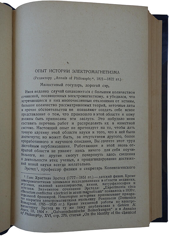 Антикварная книга "Избранные работы по электричеству" Фарадей М.(1939г.) АННОТАЦИЯ Перевод под редакцией с биографическим очерком и примечаниями З.А. Цейтлина. Редактор Г.Н. Кольченко. В основу настоящего издания положен текст «Experimental Researches in Electricity» 1838-1855 гг. Перевод сверен с трехтомным немецким изданием S. Kalischera (1889-1891) и изданием Ostwalds Klassiker под редакцией A. Oettingena. При отборе статей и отрывков для настоящего сборника составитель имел в виду, во-первых, дать документы, касающиеся важнейших открытий Фарадея в области электромагнетизма и электрохимии, во-вторых, показать эволюцию физических воззрений Фарадея и, наконец, выявить философские основы физики Фарадея. Материал, приведенный в сборнике, расположен в хронологическом порядке и начинается с двух работ Фарадея исторического характера: «Опыт истории электромагнетизма» и «Историческая заметка, касающаяся электромагнитного вращения». Основная работа 1831 года об электромагнитной индукции дана полностью. ОПИСАНИЕ Формат: 202×135×30мм Описание переплета: Современный полукожаный Состояние: Отличное