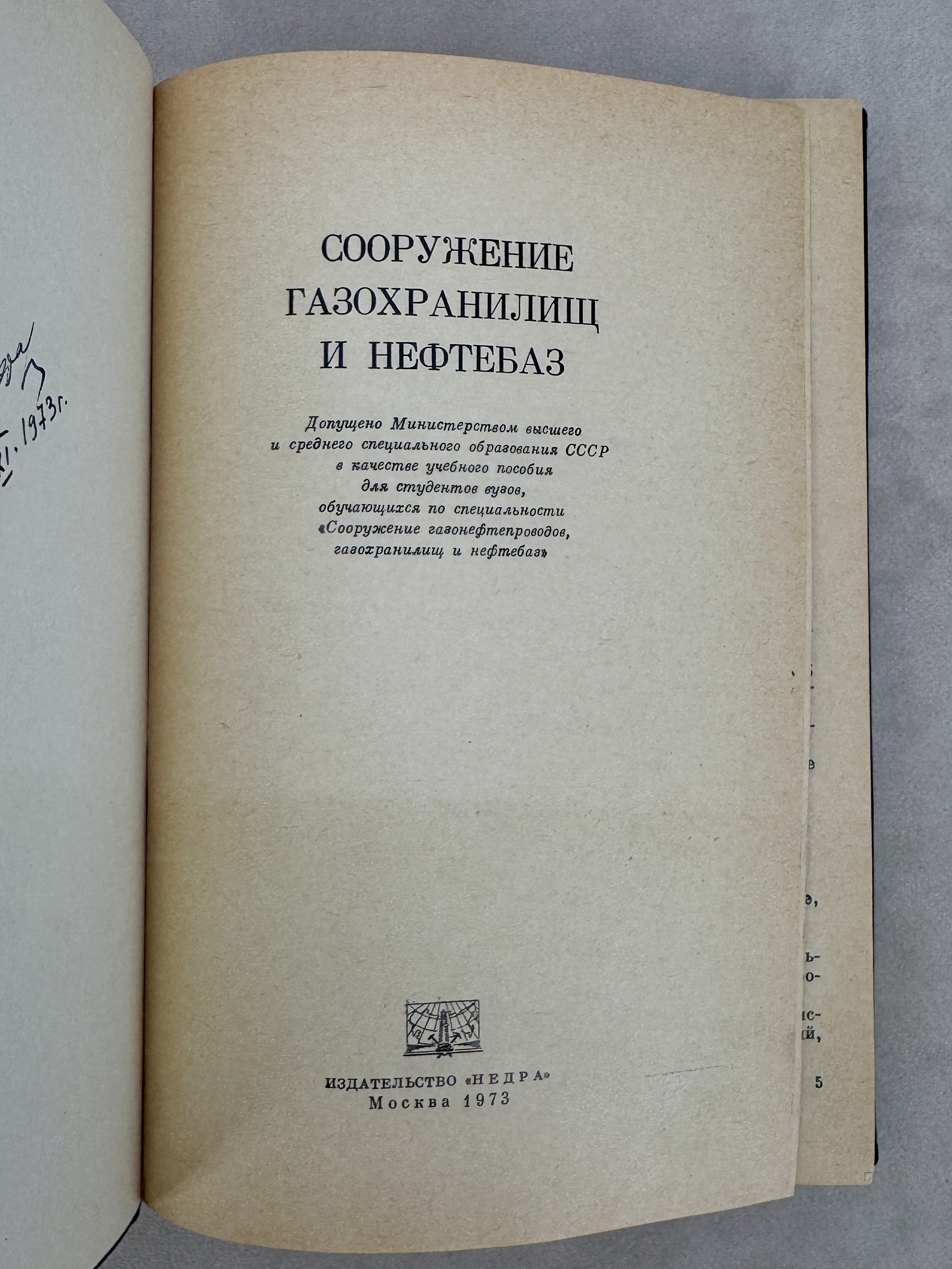 Антикварная книга "Сооружение газохранилищ и нефтебаз с автографом автора" Стулов Т.Т.,Поповский Б.В.,Иванцов О.М.,Сафарян 1973 г.