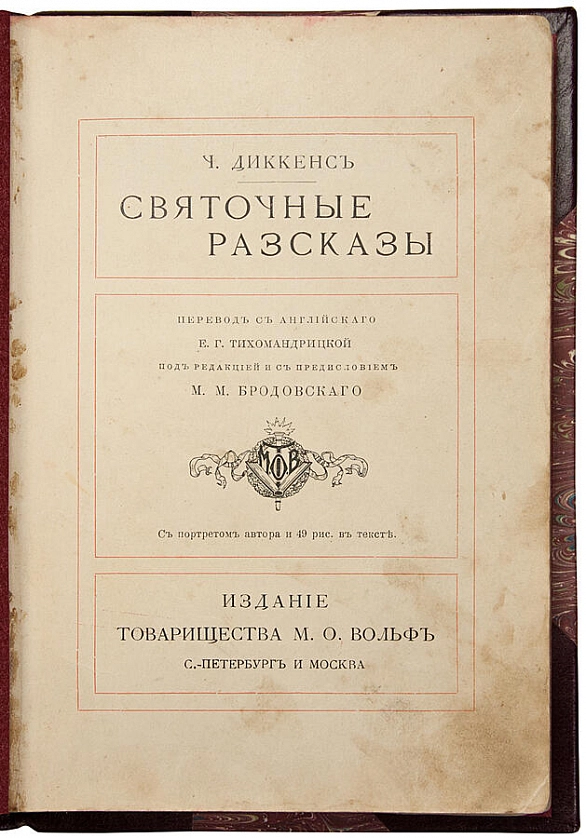 Антикварная книга "Святочные рассказы" Диккенс Ч. 1904г. ОПИСАНИЕ Перевод с английского Е.Г. Тихомандрицкой под редакцией и с предисловием М.М. Бродовского. С портретом автора и 49 рис. в тексте. Чарльз Диккенс - английский писатель, стенограф, репортёр, романист и очеркист. Классик мировой литературы, один из крупнейших прозаиков XIX века, он стал самым популярным англоязычным писателем ещё при жизни. Творчество Диккенса относят к вершинам реализма, но в его романах отразились и сентиментальное, и сказочное начала.