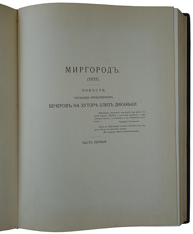 «Вечера на хуторе близ Диканьки» - первый сборник повестей Н.В. Гоголя, благодаря которому автор встал в один ряд с другими русскими классиками. Сборник «Миргород» стал продолжением первого сборника. В повестях Н.В. Гоголя видна любовь и знание Малороссии. Его так называемая «украинская» проза сделала его одним из самых заметных российских писателей. В начале книги есть вводное слово от иллюстраторов. Иллюстрации были выполнены в начале XX века художниками С.М. Дудиным и Н.И. Ткаченко по заказу известного издателя А. Девриена. В конце книги помещен словарь малороссийских слов, встречающихся в произведениях.