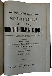 Антикварная книга "Объяснительный словарь иностранных слов, вошедших в употребление в русский язык, с объяснением их корней" Михельсон А.Д. (1891г.)