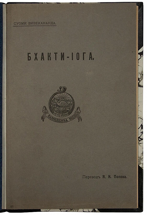 Суоми Вивекананда. Бхакти-Йога (Антикварная книга 1914г.) ОПИСАНИЕ Лекции, читанные Суоми Вивекананда, пересмотренные и изданные Суоми Сарадананда. Перевод со второго калькуттского издания Я.К. Попова. Суоми Вивекананда (1863-1902) – оригинальный индийский мыслитель, философ, ученик знаменитого мудреца и религиозного деятеля Шри Рамакришна. Объехал полмира с лекциями о философии индуизма. «Бхакти-йога» - одна из лучших книг С.Вивекананды. Бхакти-йога – путь богоискания и богопостижения через любовь. Именно этому учит индийский философ в своей книге и тому, как через самоотречение, послушание и любовь прийти к Высшему Знанию и постичь истину.
