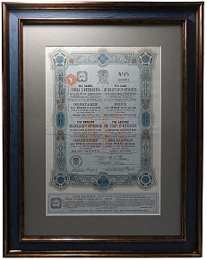 Антикварная облигация "Облигация Общества Ачинск-Минусинской железной дороги."1914 г.