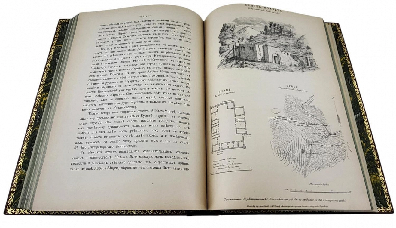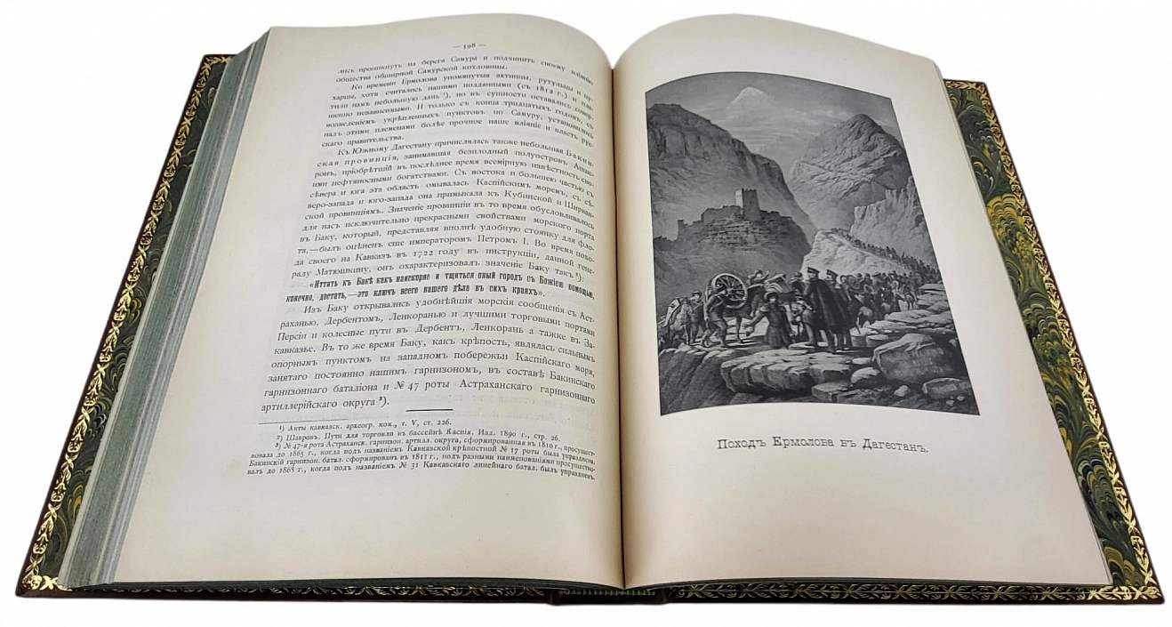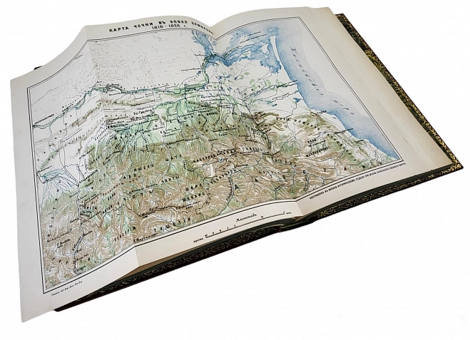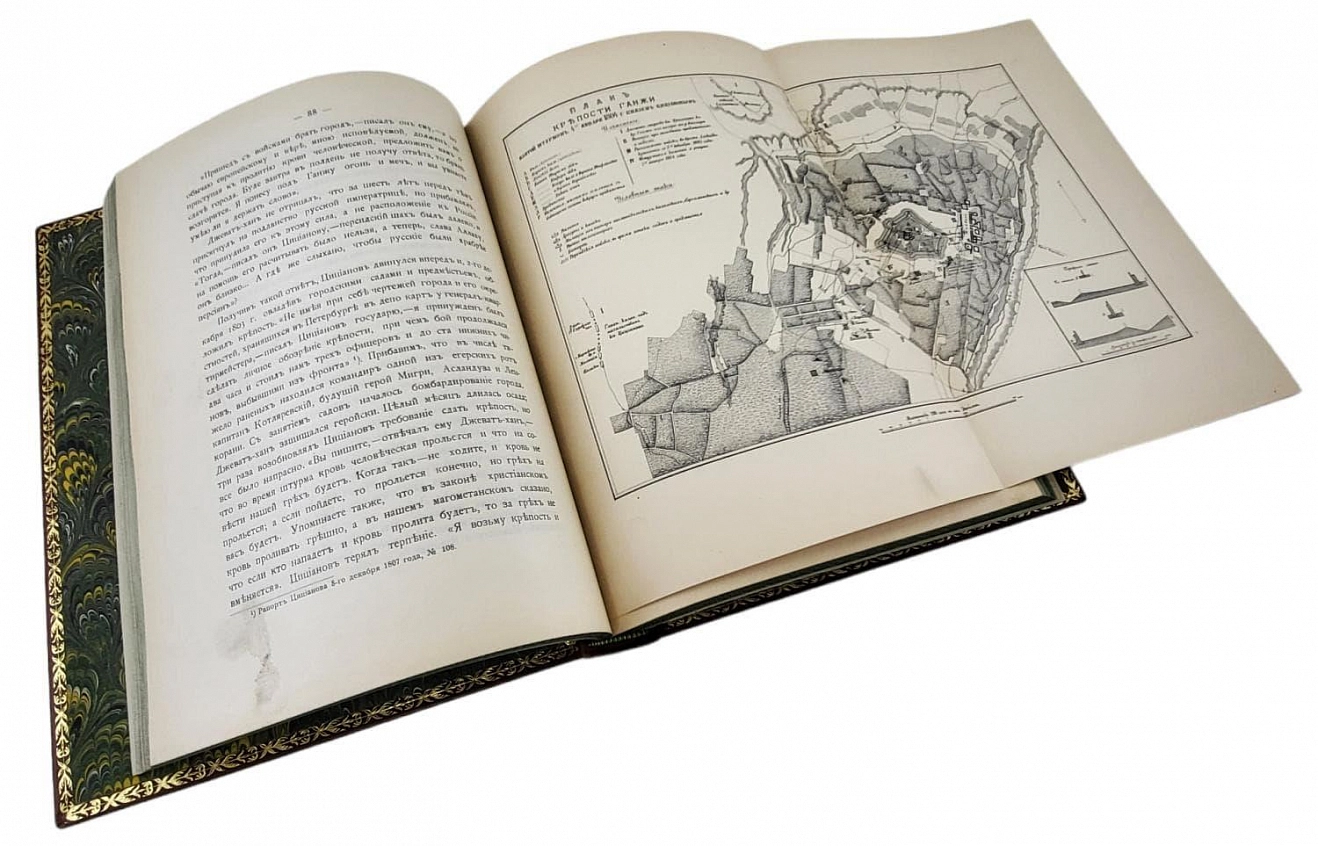 Утверждение русского владычества на Кавказе: К столетию присоединения Грузии к России. 1801-1901 / Под руководством начальника штаба Кавказского военного округа генерал-лейтенанта Н.Н. Белявского; Под ред. генерал-майора Потто. - Тифлис: тип. Я.И. Либерман, 1901-1908. Формат 21 х 29 см. Многочисленные иллюстрации: портреты, планы, карты на отдельных листах. Блоки в очень хорошей сохранности; некоторые карты воссозданы. Юбилейное издание, выпущенное к столетию вхождения Грузии в состав Российской империи. Этот капитальный исторический труд задумывался составителями как многотомный сборник, всесторонне освещающий события многолетней войны в кавказском регионе. Однако известны лишь первые четыре и двенадцатый тома, вышедшие под руководством начальника Кавказского военного округа Н. Н. Белявского и под редакцией генерал-лейтенанта В. А. Потто. Все изданные тома в комплекте встречаются крайне редко.