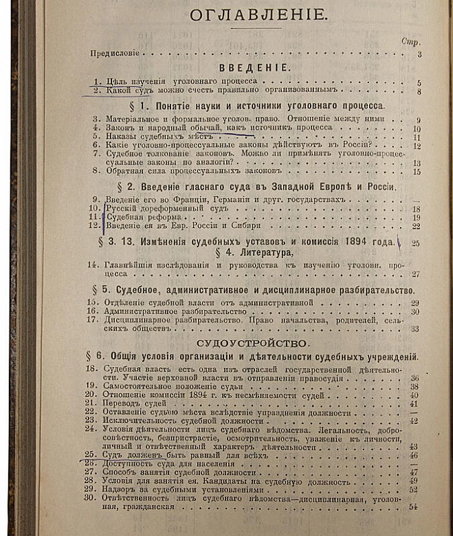Духовской М.В. Русский уголовный процесс (Антикварная книга 1910г.) ОПИСАНИЕ Михаил Васильевич Духовской (1849-1903) - известный русский криминалист, общественный деятель, один из основателей отечественной криминалистики. Окончил курс в Московском университете по юридическому факультету, затем слушал уголовное право в Гейдельбергском университете и Галле. Был назначен приват-доцентом Демидовского лицея по уголовному праву. В 1874 г. вступил в присяжные поверенные округа Московской судебной палаты. В 1885 г. он стал читать лекции в Московском университете, в 1891 г. получил степень доктора и в 1892 г. был назначен профессором Московского университета по кафедре уголовного процесса, которую занимал до смерти. Являлся одним из главных инициаторов учреждения в Москве попечительств о бедных. Был очень популярным в Москве общественным деятелем, состоял почетным мировым судьей, гласным губернского и уездного земства, городской Думы и членом многочисленных благотворительных и просветительных обществ. При его деятельном участии была основана русская группа международного союза криминалистов. Книга «Русский уголовный процесс» является академическим курсом лекций по уголовному праву. Включает в себя изложение ключевых вопросов уголовного судопроизводства России. Профессор рассматривает само понятие уголовного процесса и его историческое развитие: введение гласного суда в Западной Европе и России, изменения судебных уставов в Российской империи в XIX веке. Автор описывает судебное разбирательство и судоустройство, общие условия организации и деятельности судебных учреждений, систему уголовных судов. Одна из глав посвящена истории и работе суда присяжных в России. М.В. Духовской рассматривает состав и функции адвокатуры, прокуратуры, органов предания судов. Исследует такие ключевые понятия уголовного судопроизводства: подсудность уголовных дел, обвинение, прекращение преследования, гражданский иск, защита, доказательство, экспертиза, показание подсудимого и свидетелей, осмотр и освидетельствование, вещественные и письменные доказательства, косвенные доказательства или улики, меры пресечения, прения сторон, вердикт присяжных, апелляция, обжалование, исполнение судебного приговора, вознаграждение невинно осужденного и др. Классический труд известного отечественного правоведа является прекрасным подарком для юристов, представителей судебной системы, криминалистов, а также для всех, кто интересуется уголовным правом – студентов и преподавателей юридических вузов.