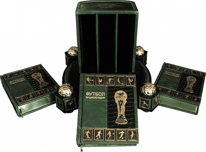 Книга арт-объект "Футбол. Энциклопедия в 3-х томах" (в кожаном футляре)