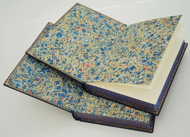 Дублюра (форзац)выполнена из мраморной бумаги ручного крашения;