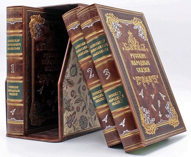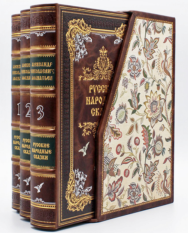 Народные русские сказки Афанасьева А.Н. 3 тома кожаный переплет
