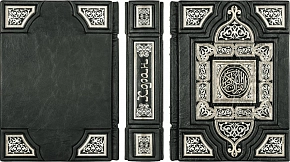 Французский цельнокожаный переплет ручной работы на шнурах. Натуральная переплетная кожа. Форзац составной на кожаной слизуре. Дизайнерская бумага. Каптал двойной наборный, ручное плетение из шелковых нитей. Обрез торшорированный золотой фольгой. Ляссе шелковое. Тиснение полиграфической фольгой и блинтом. Ювелирная накладка-художественное литье, эмаль.
