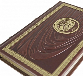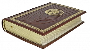 Подарочная книга в кожаном переплёте ручной работы. Ручной цельнокожаный переплет. Кожа переплетная (Италия). Блинтовое тиснение. Обрез торшонированный золотой фольгой.