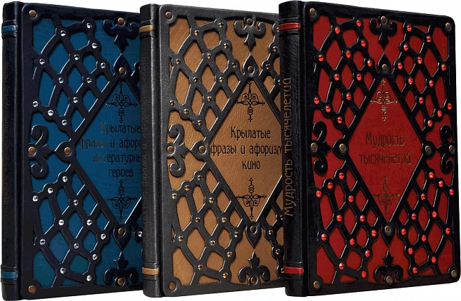 Подборка из трех изданий, в которых собраны лучшие фразы и выражения выдающихся личностей, философов, мыслителей и знаменитостей. Великолепное оформление орнаментами, репродукциями мировой живописи. Высшее качество полиграфии, мелованная бумага. Отпечатано в Германии.