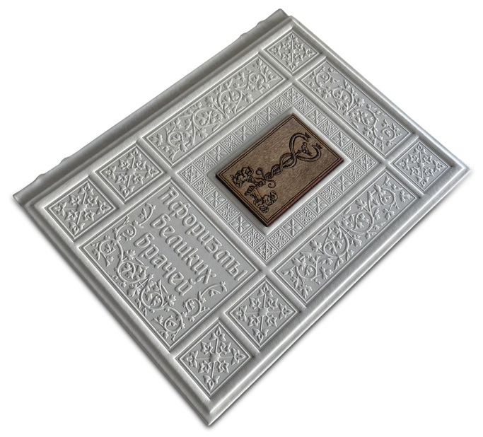 Подарочная книга "Афоризмы великих врачей" ОПИСАНИЕ Подарочное, богато иллюстрированное издание в кожаном переплете ручной работы из натуральной кожи с трехсторонним золотым обрезом. Книга оформлена деревянной накладкой с художественной гравировкой, блинтовое тиснение орнамента. Афоризмы Гиппократа, Галена, Авиценны, Парацельса, Пирогова, Склифосовского и многих других великих врачей.