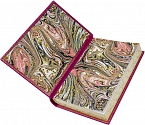 Это полностью ручная работа, исторический, французский стиль переплета, золотое тиснение, книжный блок тонирован и покрыт золотым узором. Форзац из мраморной бумаги.
