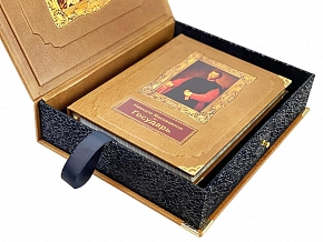 Книга представлена в оригинальном подарочном коробе, сделанном из мдф и обтянутым вручную высококачественной натуральной кожей.