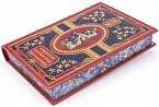 Художественный стиль кожаного переплета, индивидуальный дизайн оформления. Тиснение рельефное и цветное на обложке, корешке и дублюре. Отпечатана на дизайнерской бумаге с тематическим оформлением. Обрезы блока страниц отшлифованы, тонированы с нанесением рисунка в стиле мраморной бумаги. Профессиональная ручная работа наших мастеров!
