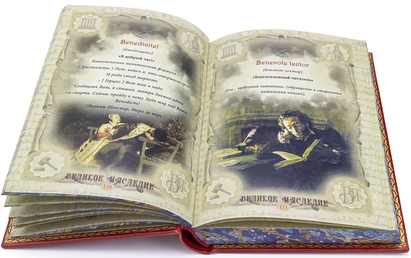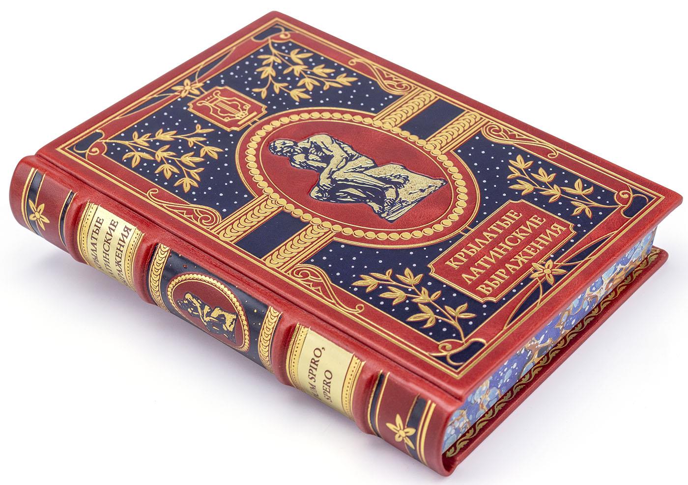 Книга "Крылатые латинские выражения" в подарочном издании. Художественный кожаный переплет, специально для данного издания разработали дизайн рельефного и цветного тиснения, книжный блок отпечатали на дизайнерской бумаге, обрезы которого украшены тонированием в стиле мраморной бумаги, эта подарочная книга имеет все основания быть одним из самых уникальных подарков!