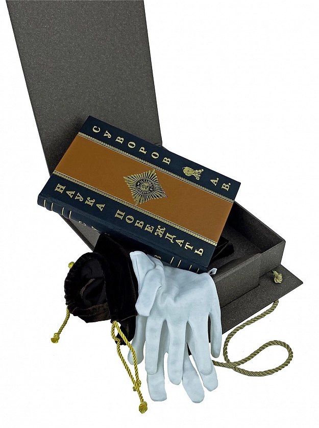 Суворов А.В. Наука побеждать АННОТАЦИЯ Книга "Наука побеждать", вобравшая в себя наиболее интересные и значимые произведения величайшего русского полководца Александра Васильевича Суворова (1730-1800), а также уникальные мемуарные свидетельства современников и очевидцев, открывает новую серию издательства "Эксмо" - "Великие полководцы". Из приказов и рапортов, переписки и мемуаров, походных дневников и теоретических кабинетных штудий перед читателем складывается гигантская мозаика русской военной истории последней трети XVIII века. Множество специально подобранных для настоящего издания старинных карт, картин, рисунков и портретов помогут читателю увидеть, какой была описываемая эпоха Суворова - великий век великих российских побед. ОПИСАНИЕ Составной переплёт ручной работы, украшен золотым и цветным тиснением. Корешок декорирован бинтами. Текст книги напечатан на офсетной бумаге и дополнен цветными иллюстрациями. Обрез оформлен художественным изображением. Ляссе из шёлковой ленты. Форзац цельный из дизайнерской бумаги. Дублюра окатана золотом. Книга представлена в оригинальном подарочном коробе, перчатки и, по желанию, сертификат (может быть именным) в комплекте. Цветовое сочетание переплёта и упаковки может отличаться от представленных на фото.