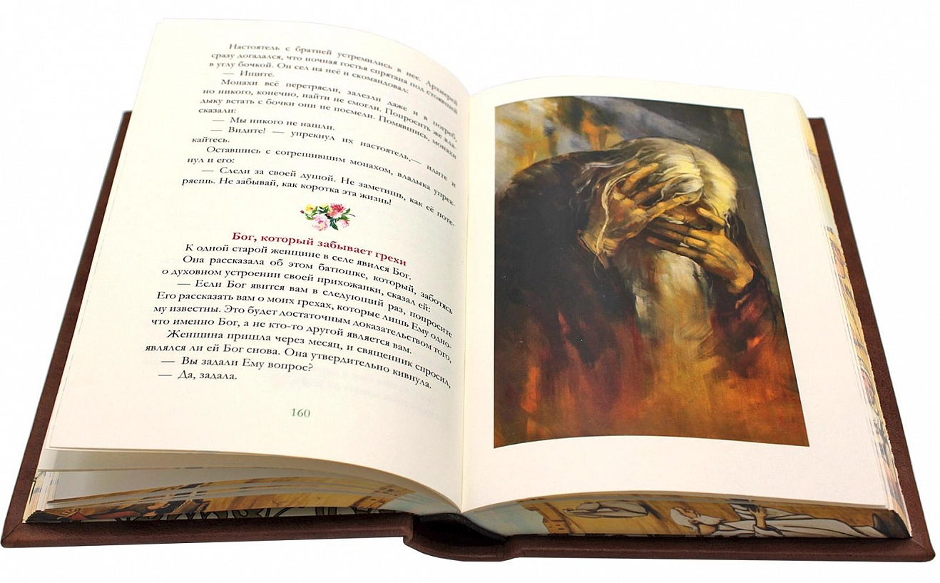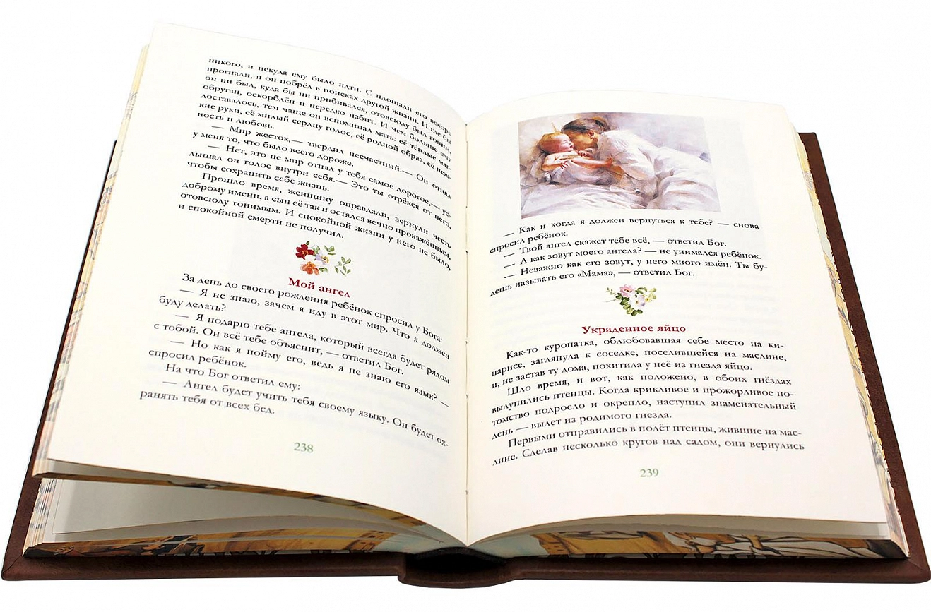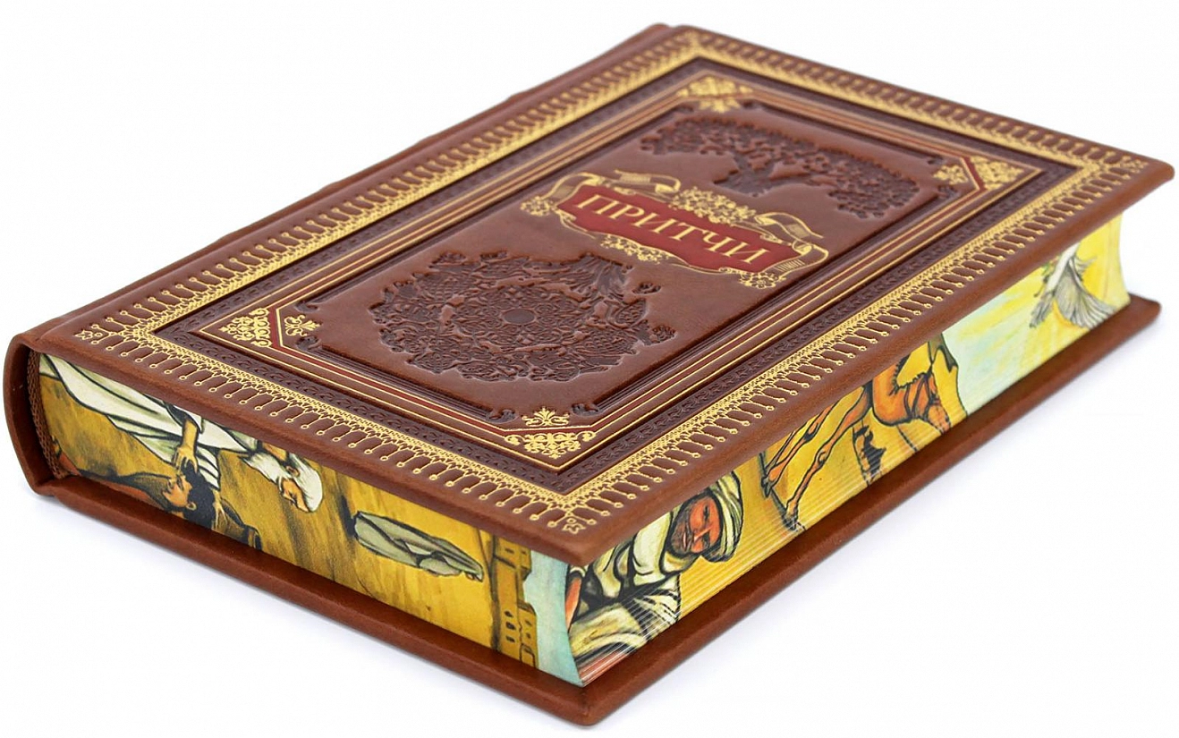 Подарочная книга в кожаном переплете "Притчи" АННОТАЦИЯ Притчи - искусство слов попадать прямо в сердце. Недоступное они делают доступным, сложное - простым, тайное - явным. Притчи непритязательны. Но не следует относиться к ним пренебрежительно. Ибо давно уже сказано: "Подобно тому, как при свете грошовой свечки отыскивается оброненный золотой, так с помощью притчи познается истина!" ОПИСАНИЕ Подарочное издание в кожаном переплете, полностью ручная работа, индивидуальное оформление дизайна обложки. Тематическое оформление обреза книжного блока. Переплетная кожа высокого качества. Это прекрасный подарок как по содержанию, так и по оформлению. Уменьшенный формат издания. Особенности оформления: Ручной кожаный переплет, тиснение золотое и блинтовое, специально для этой книги разработан дизайн оформления обложки. Блок страниц вручную отшлифован и тонирован с тематическим рисунком. Книга отпечатана на дизайнерской бумаге Ozon Ivory. Вес 600г